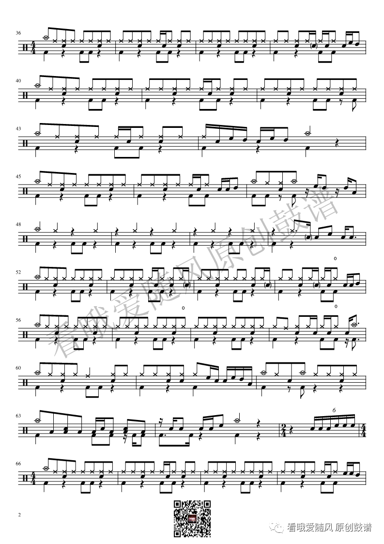 ONEOKROCK《IWasKing》架子鼓谱,看哦爱随风编配出品,共有2张高清图谱,由打鼓谱上传并分享。