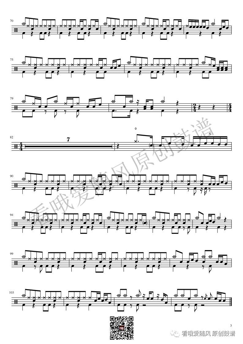 如龙维新OP《ClockStrikes》架子鼓谱,看哦爱随风编配出品,共有1张高清图谱,由打鼓谱上传并分享。