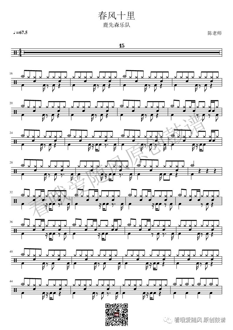 鹿先森乐队《春风十里》架子鼓谱, 看哦爱随风编配出品,共有2张高清图谱,由打鼓谱上传并分享。NO.48 春风十里 鹿先森乐队