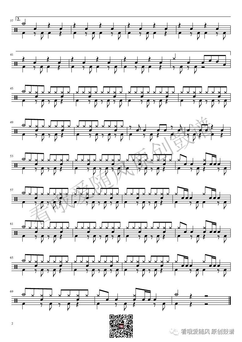ONEOKROCK《IWasKing》架子鼓谱,看哦爱随风编配出品,共有2张高清图谱,由打鼓谱上传并分享。