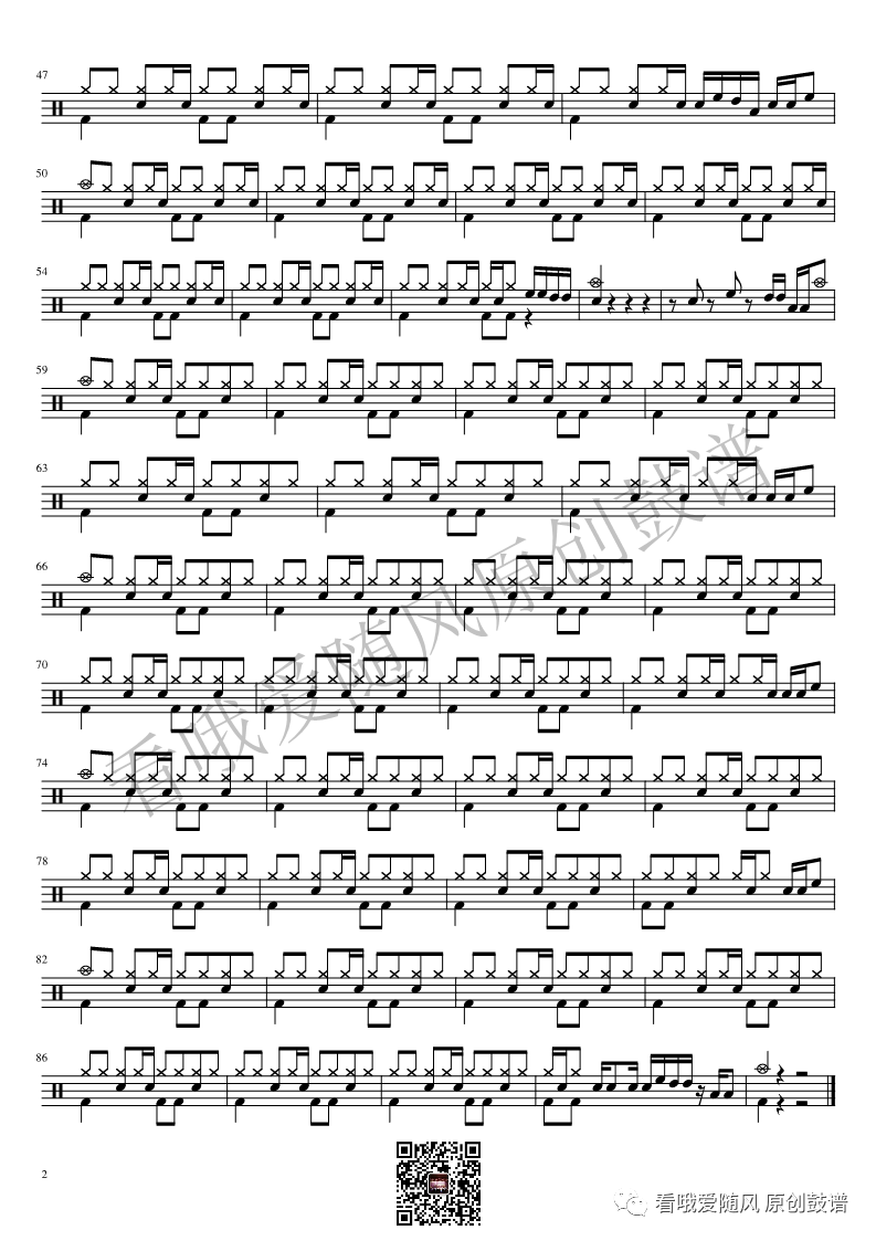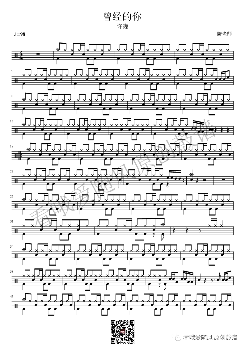 ONEOKROCK《未完成交響曲》架子鼓谱,看哦爱随风编配出品,共有1张高清图谱,由打鼓谱上传并分享。
