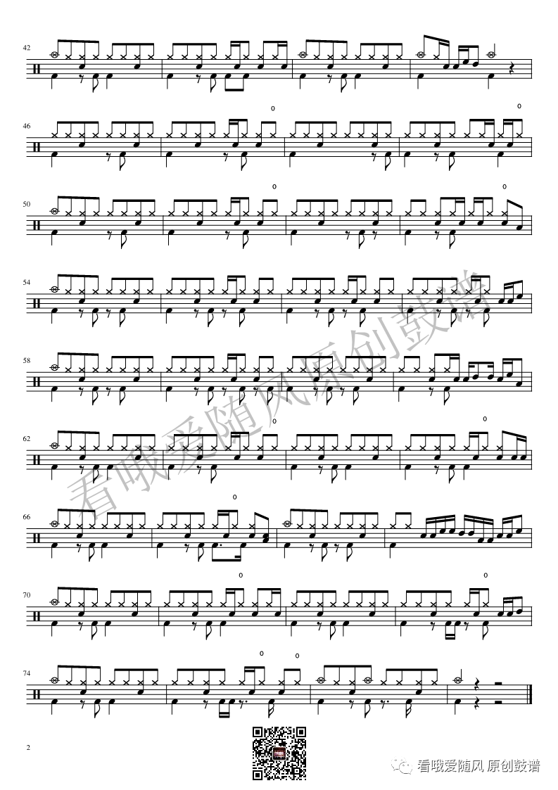 ONEOKROCK《IWasKing》架子鼓谱,看哦爱随风编配出品,共有2张高清图谱,由打鼓谱上传并分享。