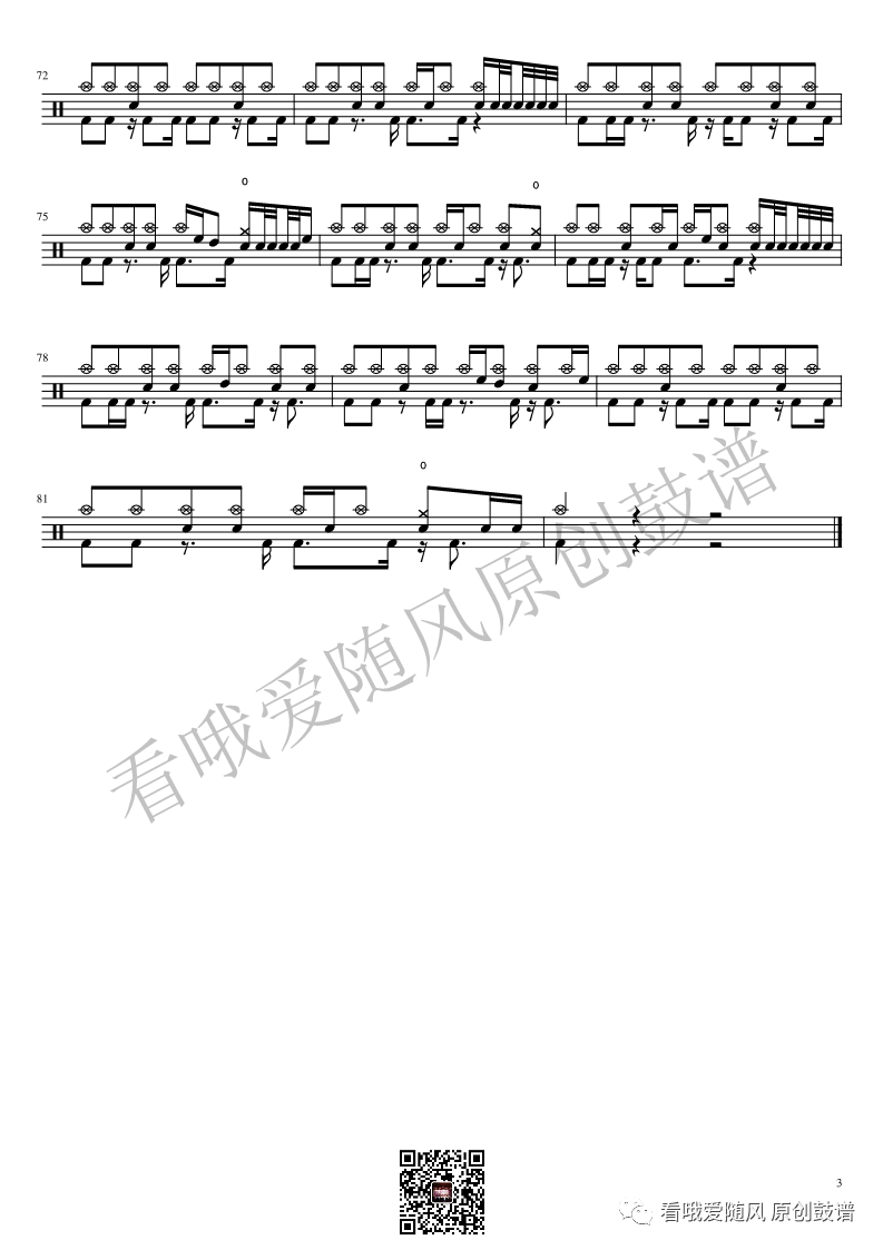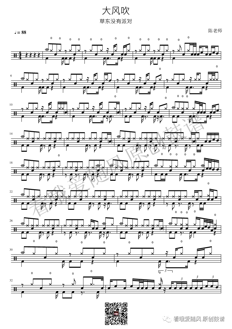 草东没有派对《大风吹》架子鼓谱, 看哦爱随风编配出品,共有3张高清图谱,由打鼓谱上传并分享。NO.50 大风吹 草东没有派对