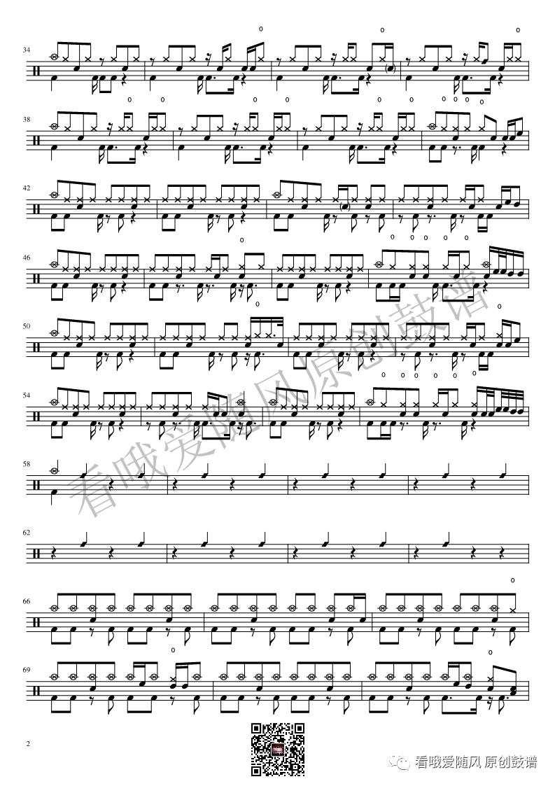 ONEOKROCK《未完成交響曲》架子鼓谱,看哦爱随风编配出品,共有1张高清图谱,由打鼓谱上传并分享。