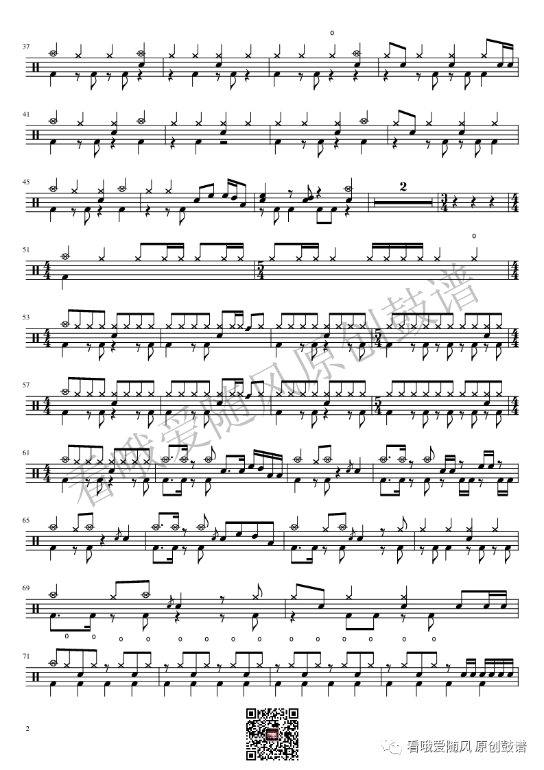 ONEOKROCK《未完成交響曲》架子鼓谱,看哦爱随风编配出品,共有1张高清图谱,由打鼓谱上传并分享。