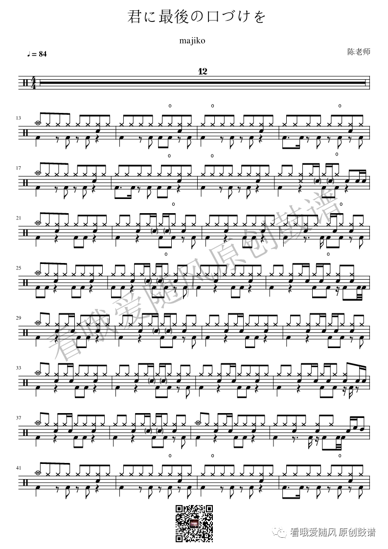 まじ娘《君に最後の口づけを》架子鼓谱, 看哦爱随风编配出品,共有3张高清图谱,由打鼓谱上传并分享。NO.74 君に最後の口づけを まじ娘 鼓谱