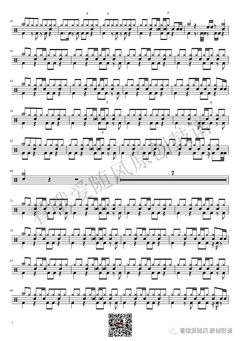ONEOKROCK《IWasKing》架子鼓谱,看哦爱随风编配出品,共有2张高清图谱,由打鼓谱上传并分享。