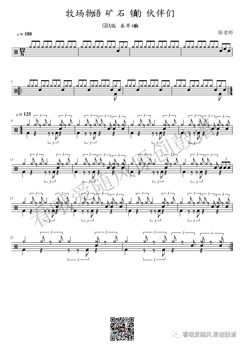 矿石镇的伙伴们《牧场物语》架子鼓谱, 看哦爱随风编配出品,共有1张高清图谱,由打鼓谱上传并分享。NO.81 牧场物语 矿石镇的伙伴们 主题曲 鼓谱