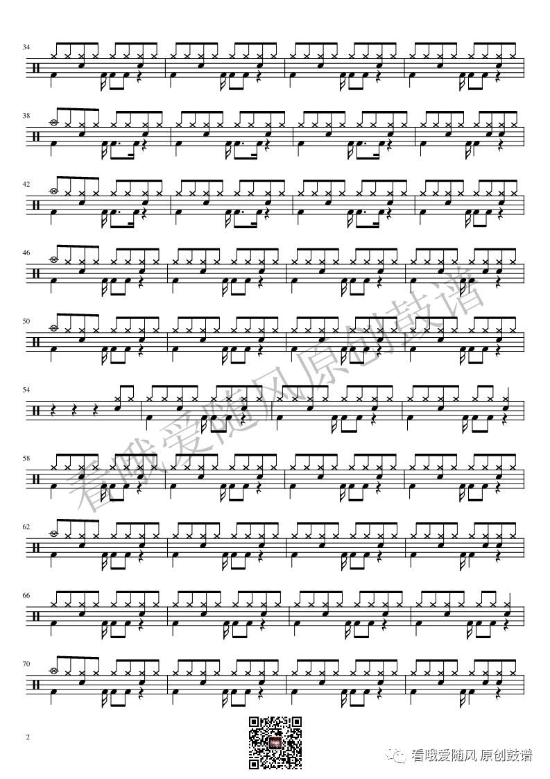 ONEOKROCK《未完成交響曲》架子鼓谱,看哦爱随风编配出品,共有1张高清图谱,由打鼓谱上传并分享。