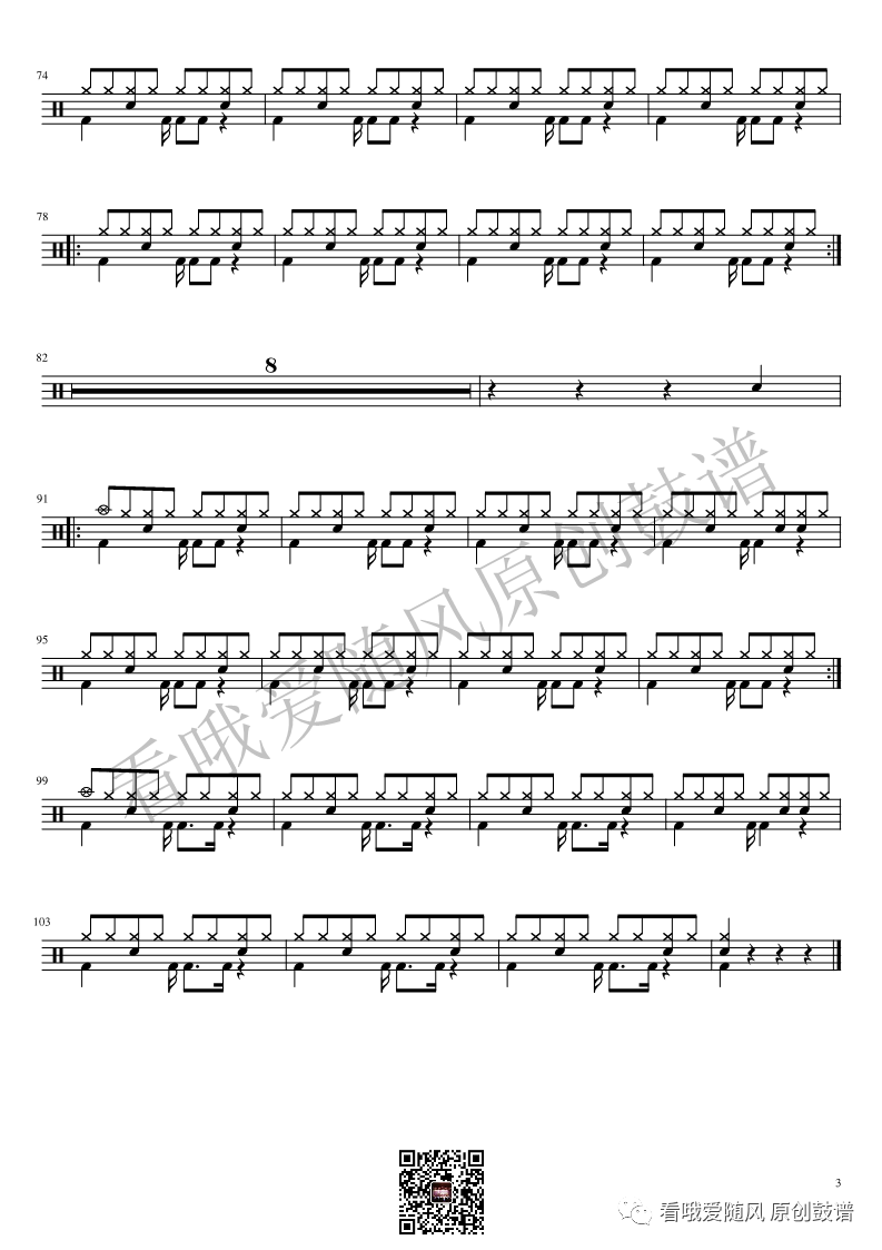 ONEOKROCK《Re:make》架子鼓谱,看哦爱随风编配出品,共有3张高清图谱,由打鼓谱上传并分享。
