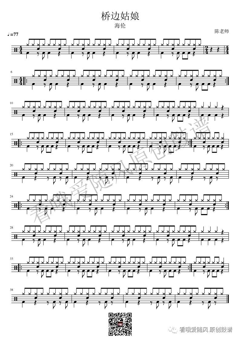买辣椒也用券《起风了》鼓谱 - 架子鼓谱