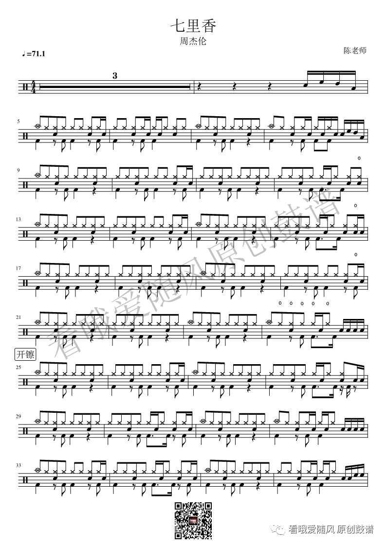 周杰伦《七里香》鼓谱 - 架子鼓谱 - 初级版