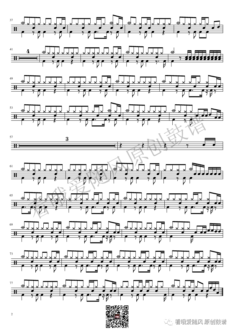 ONEOKROCK《未完成交響曲》架子鼓谱,看哦爱随风编配出品,共有1张高清图谱,由打鼓谱上传并分享。