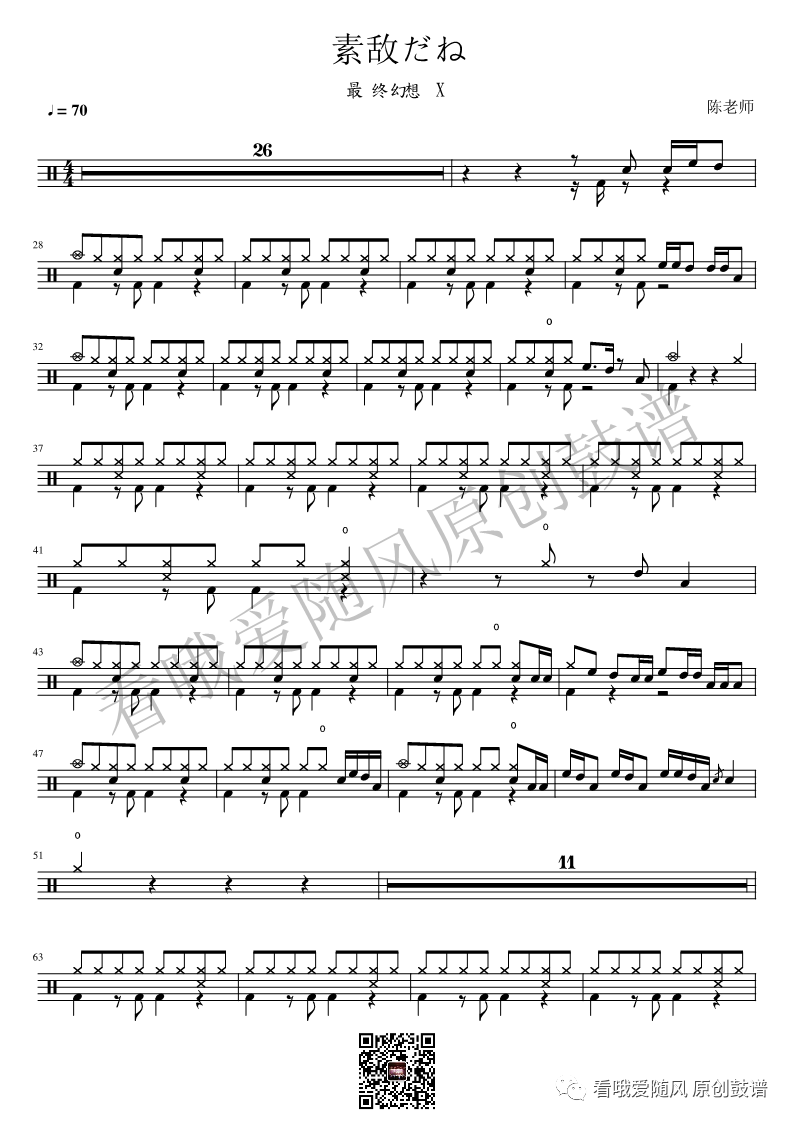 最终幻想10《素敌だね》架子鼓谱, 看哦爱随风编配出品,共有2张高清图谱,由打鼓谱上传并分享。NO.105 素敌だね【最终幻想10】鼓谱
