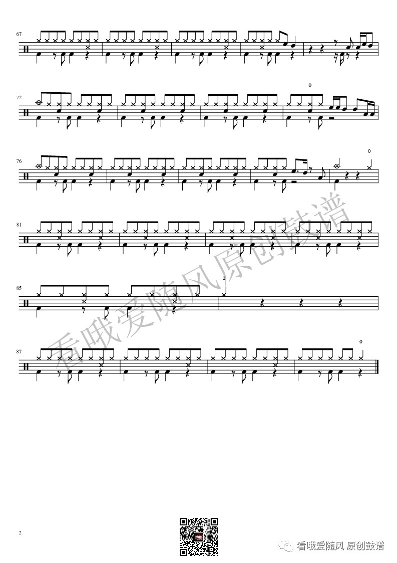 ONEOKROCK《IWasKing》架子鼓谱,看哦爱随风编配出品,共有2张高清图谱,由打鼓谱上传并分享。