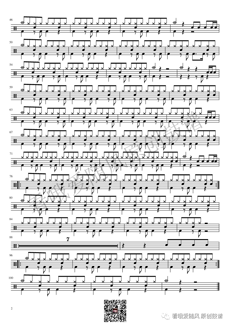 ONEOKROCK《IWasKing》架子鼓谱,看哦爱随风编配出品,共有2张高清图谱,由打鼓谱上传并分享。