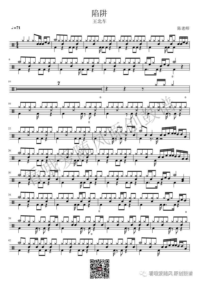 南拳妈妈《下雨天》鼓谱 - 架子鼓谱
