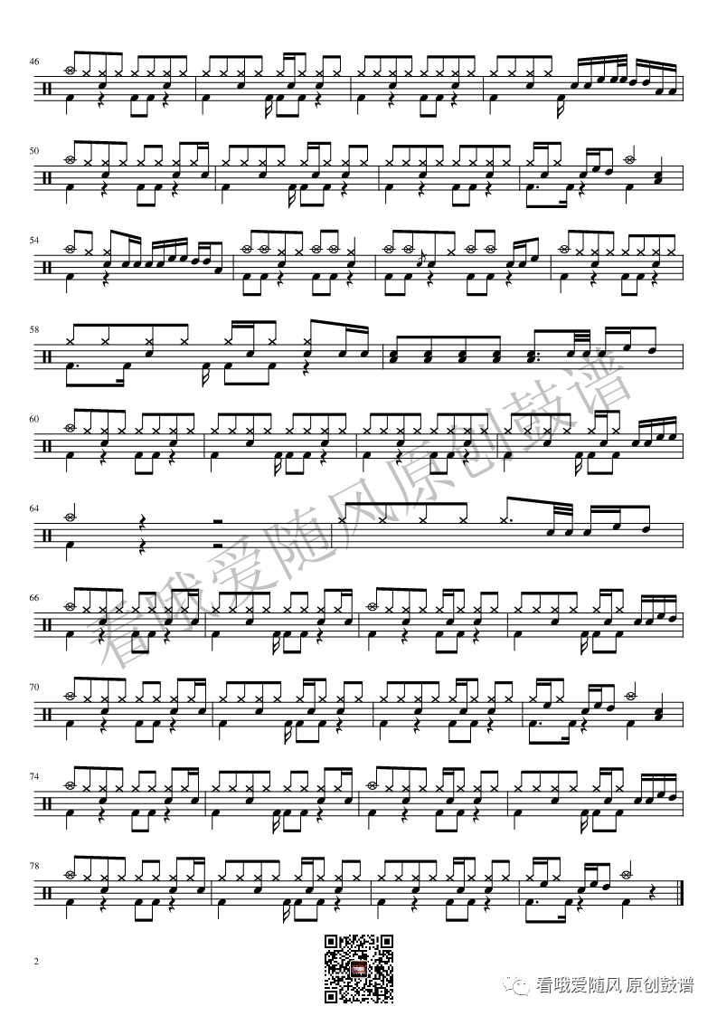 ONEOKROCK《IWasKing》架子鼓谱,看哦爱随风编配出品,共有2张高清图谱,由打鼓谱上传并分享。