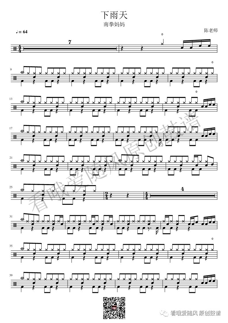MYFIRSTSTORY《MissingYou》架子鼓谱,看哦爱随风编配出品,共有1张高清图谱,由打鼓谱上传并分享。