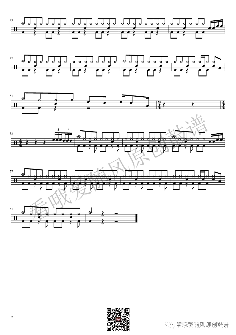 ONEOKROCK《IWasKing》架子鼓谱,看哦爱随风编配出品,共有2张高清图谱,由打鼓谱上传并分享。