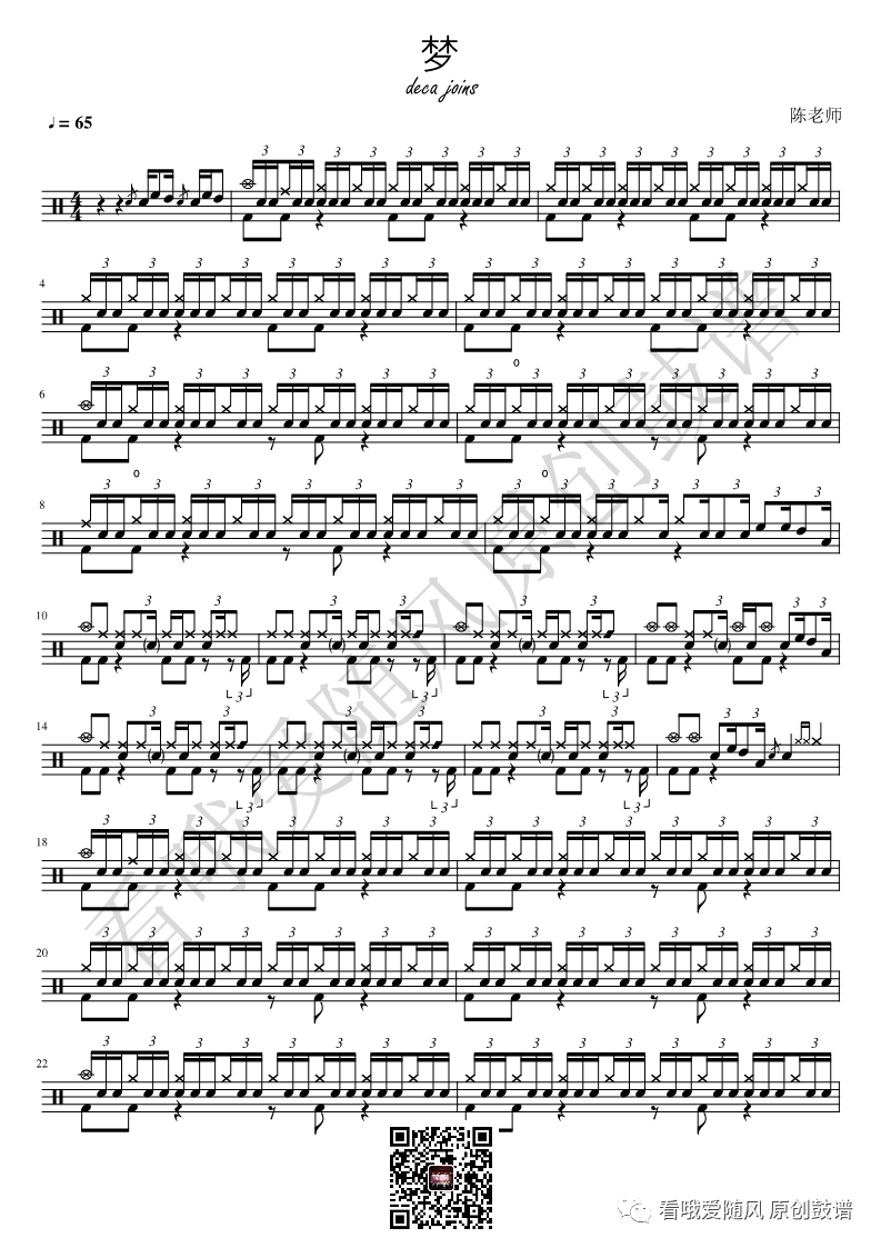 deca joins《梦》架子鼓谱, 看哦爱随风编配出品,共有3张高清图谱,由打鼓谱上传并分享。NO.191 梦 deca joins 鼓谱