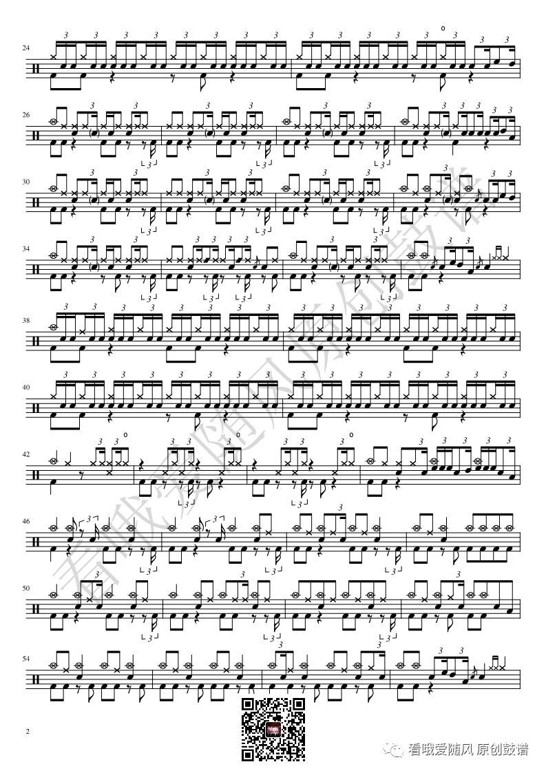 ONEOKROCK《IWasKing》架子鼓谱,看哦爱随风编配出品,共有2张高清图谱,由打鼓谱上传并分享。
