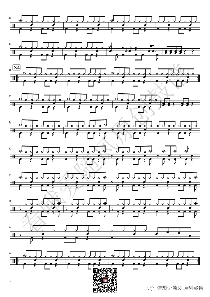 ONEOKROCK《未完成交響曲》架子鼓谱,看哦爱随风编配出品,共有1张高清图谱,由打鼓谱上传并分享。