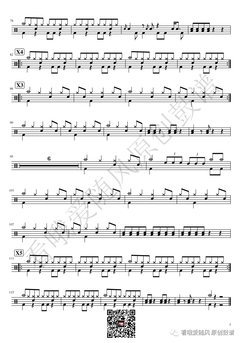 ONEOKROCK《Re:make》架子鼓谱,看哦爱随风编配出品,共有3张高清图谱,由打鼓谱上传并分享。