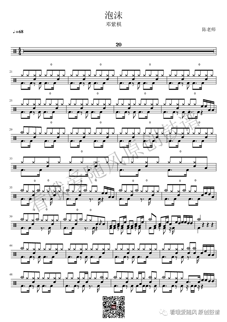 李翊君《雨蝶》鼓谱 - 架子鼓谱