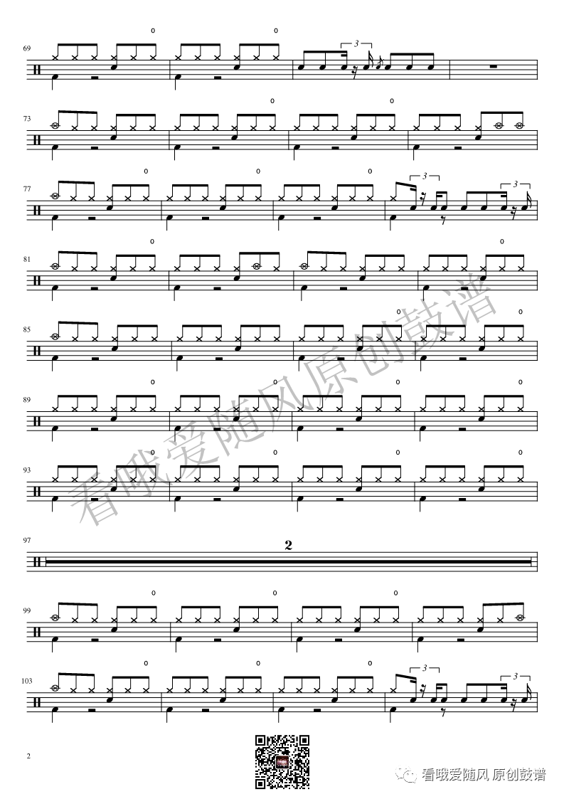ONEOKROCK《IWasKing》架子鼓谱,看哦爱随风编配出品,共有2张高清图谱,由打鼓谱上传并分享。