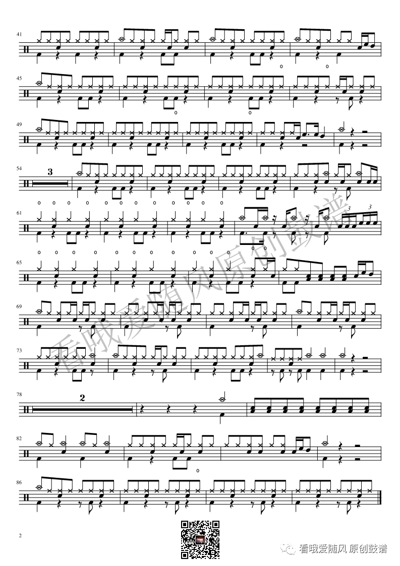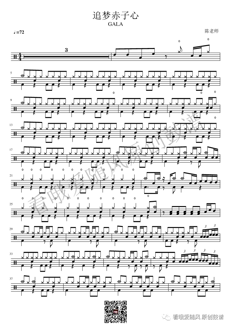 GALA《追梦赤子心》架子鼓谱, 看哦爱随风编配出品,共有2张高清图谱,由打鼓谱上传并分享。NO.143 追梦赤子心 GALA 鼓谱