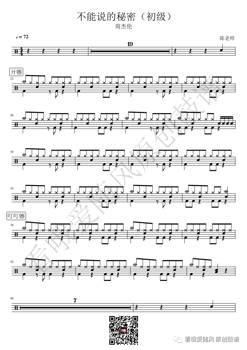 周杰伦《不能说的秘密》架子鼓谱初级版, 看哦爱随风编配出品,共有2张高清图谱,由打鼓谱上传并分享。NO.198 不能说的秘密(初级) 周杰伦 鼓谱