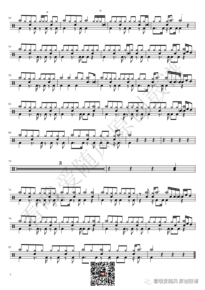 ONEOKROCK《IWasKing》架子鼓谱,看哦爱随风编配出品,共有2张高清图谱,由打鼓谱上传并分享。