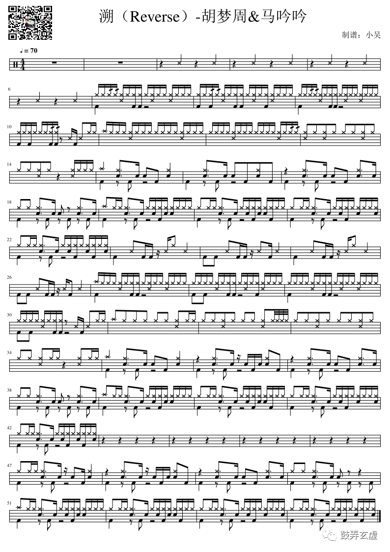 胡梦周/马吟吟《溯》架子鼓谱,鼓弄玄虚编配出品,共有1张高清图谱,由打鼓谱上传并分享。鼓谱:溯(Reverse)-胡梦周&马吟吟