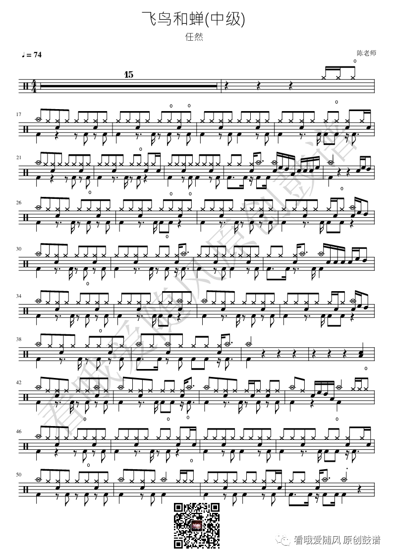 任然《飞鸟和蝉》架子鼓谱中级版, 看哦爱随风编配出品,共有2张高清图谱,由打鼓谱上传并分享。NO.203 飞鸟和蝉(中级)任然 鼓谱