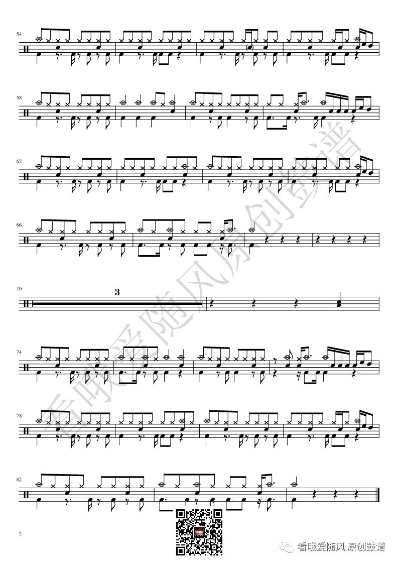 ONEOKROCK《IWasKing》架子鼓谱,看哦爱随风编配出品,共有2张高清图谱,由打鼓谱上传并分享。