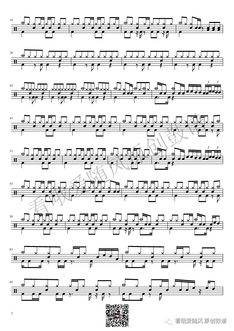 ONEOKROCK《IWasKing》架子鼓谱,看哦爱随风编配出品,共有2张高清图谱,由打鼓谱上传并分享。