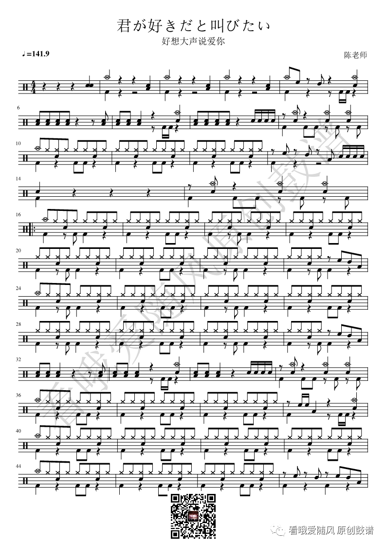 灌篮高手《好想大声说爱你》架子鼓谱, 看哦爱随风编配出品,共有2张高清图谱,由打鼓谱上传并分享。NO.211 好想大声说爱你【灌篮高手】鼓谱