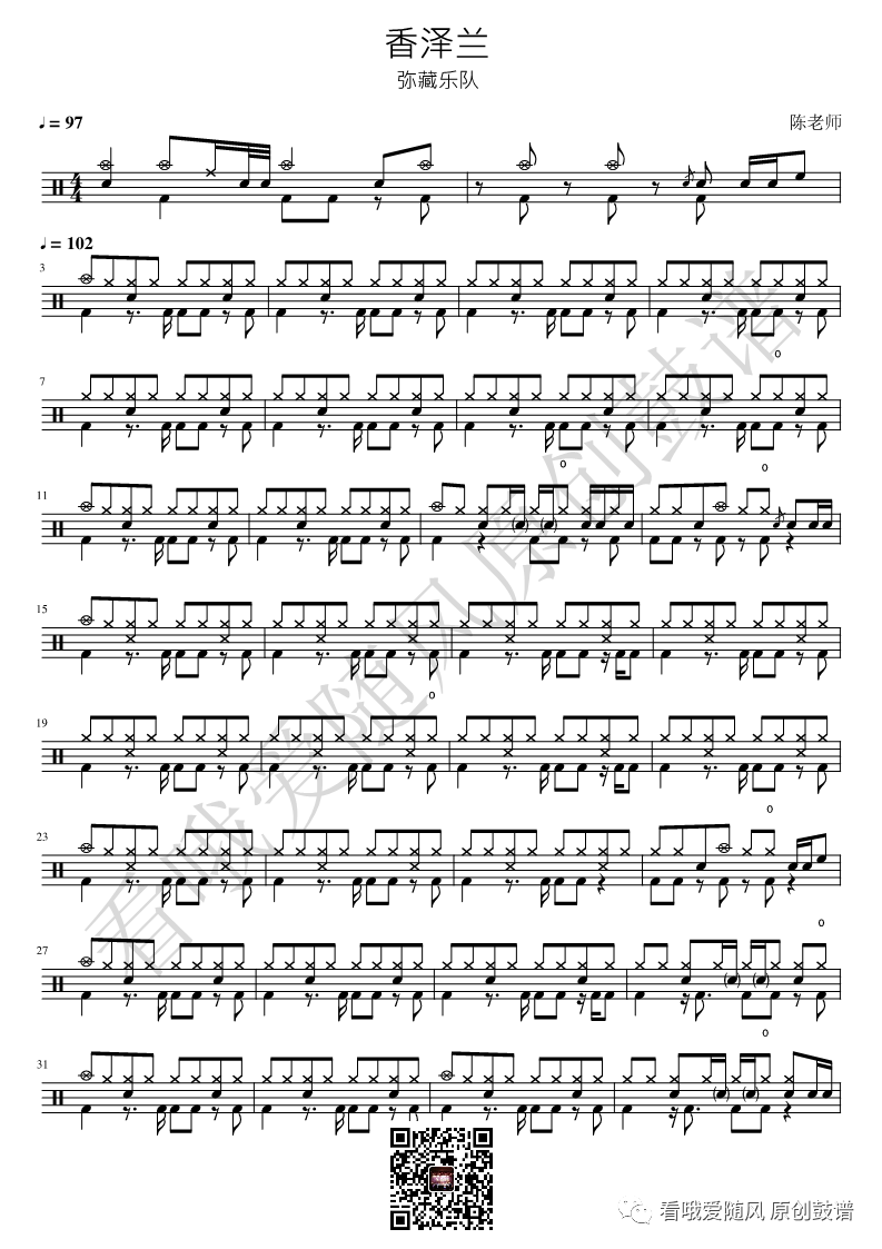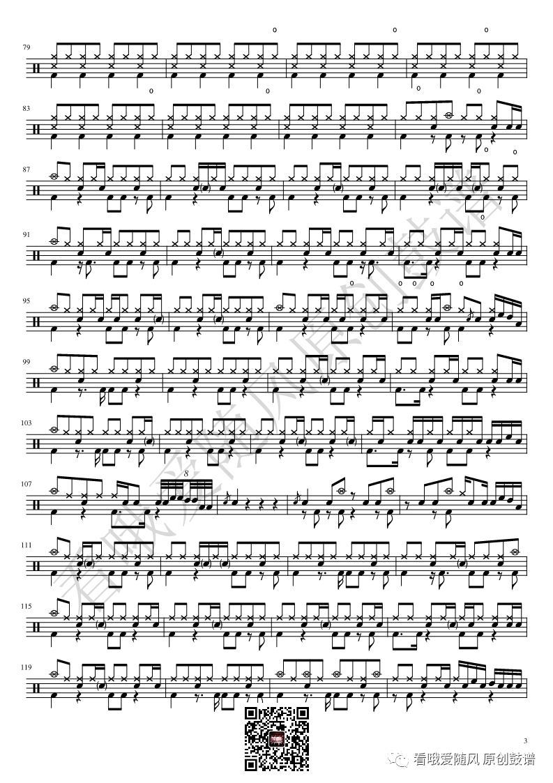 ONEOKROCK《未完成交響曲》架子鼓谱,看哦爱随风编配出品,共有1张高清图谱,由打鼓谱上传并分享。