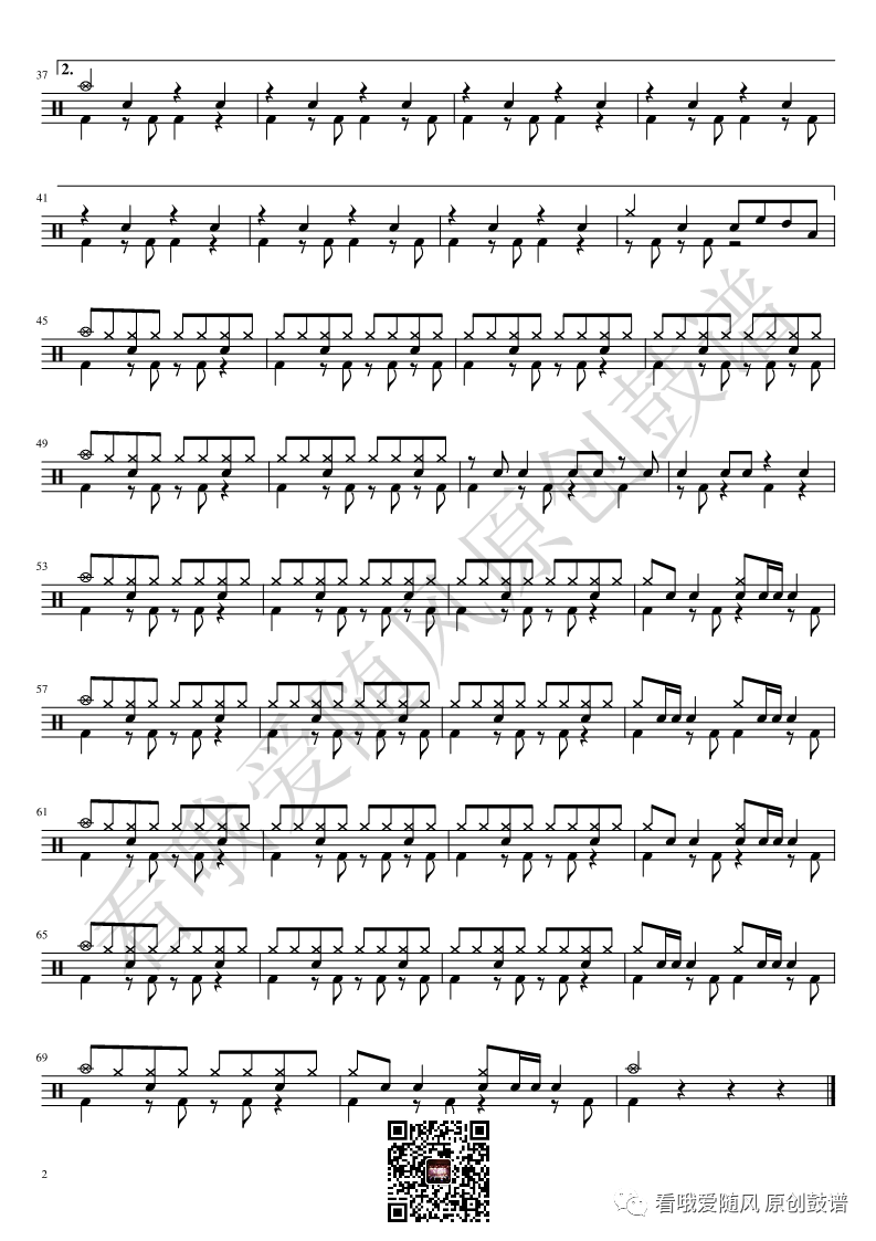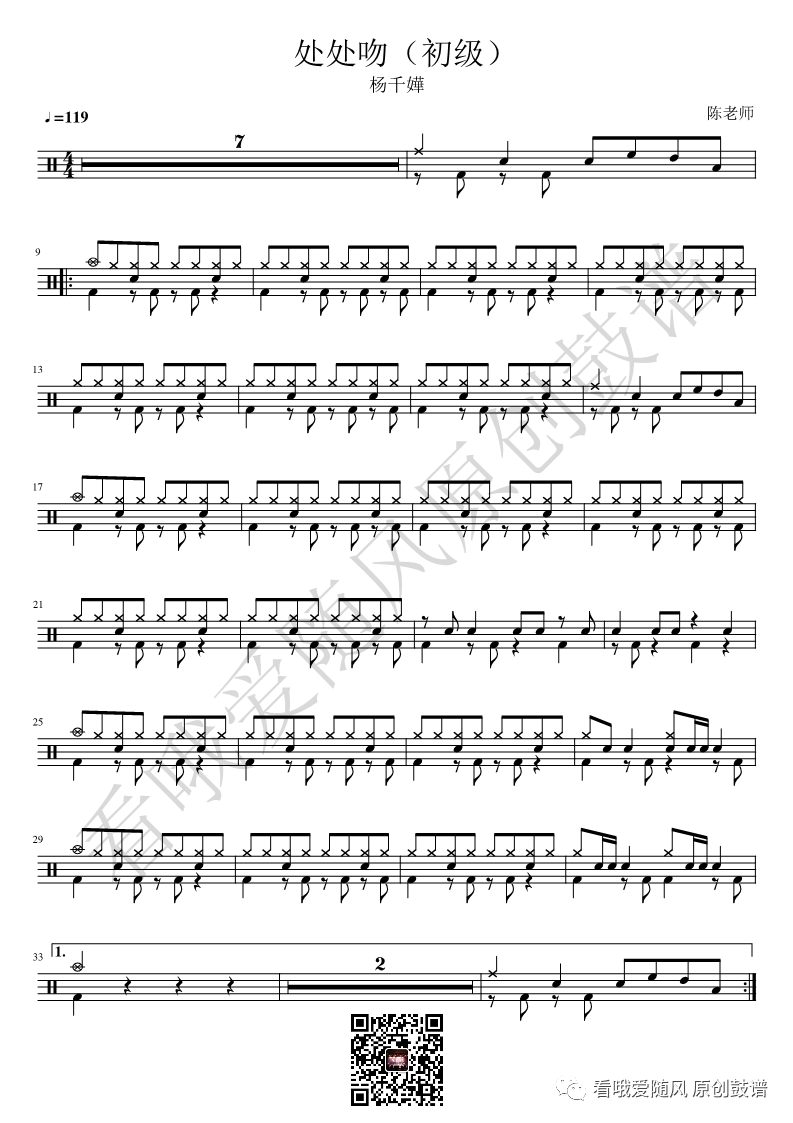 杨千嬅《处处吻》架子鼓谱初级版, 看哦爱随风编配出品,共有2张高清图谱,由打鼓谱上传并分享。NO.207 处处吻(初级)杨千嬅 鼓谱