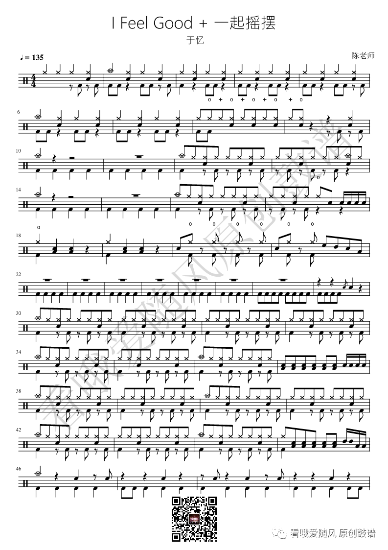 于忆《I Feel Good + 一起摇摆》架子鼓谱, 看哦爱随风编配出品,共有2张高清图谱,由打鼓谱上传并分享。NO.218 I Feel Good + 一起摇摆(Live)于忆 鼓谱