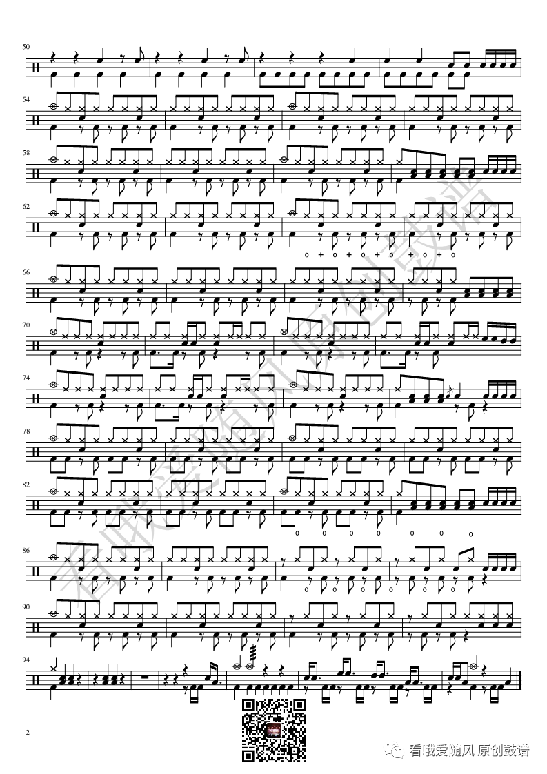 ONEOKROCK《IWasKing》架子鼓谱,看哦爱随风编配出品,共有2张高清图谱,由打鼓谱上传并分享。