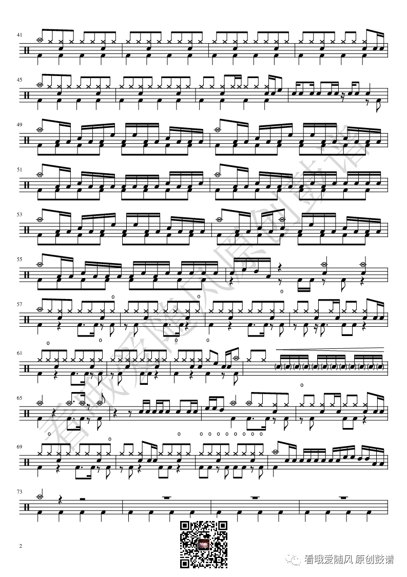 ONEOKROCK《IWasKing》架子鼓谱,看哦爱随风编配出品,共有2张高清图谱,由打鼓谱上传并分享。