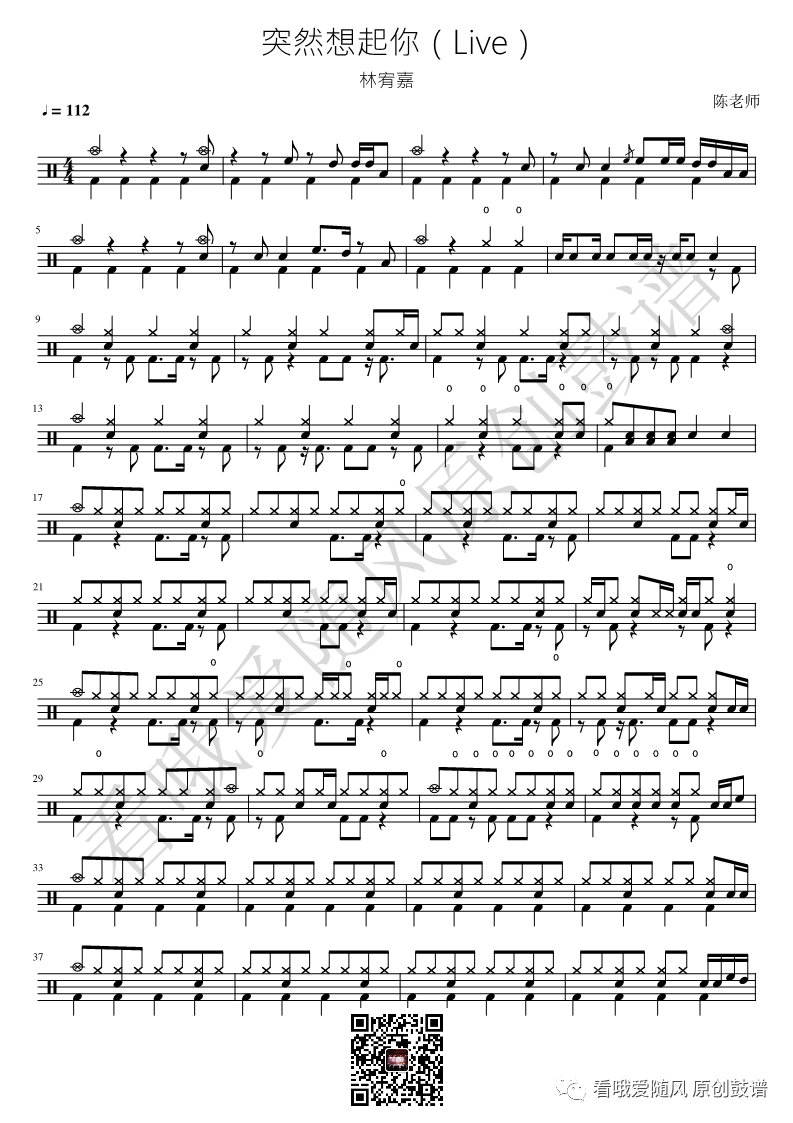 林宥嘉《突然想起你》架子鼓谱, 看哦爱随风编配出品,共有3张高清图谱,由打鼓谱上传并分享。NO.216 突然想起你(Live)林宥嘉 鼓谱