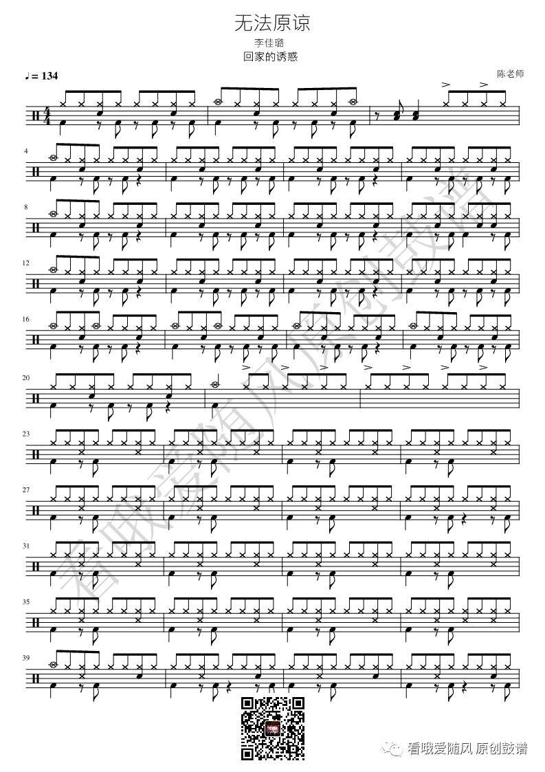 李佳璐《无法原谅》鼓谱 - 架子鼓谱