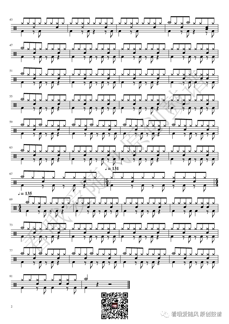 ONEOKROCK《IWasKing》架子鼓谱,看哦爱随风编配出品,共有2张高清图谱,由打鼓谱上传并分享。