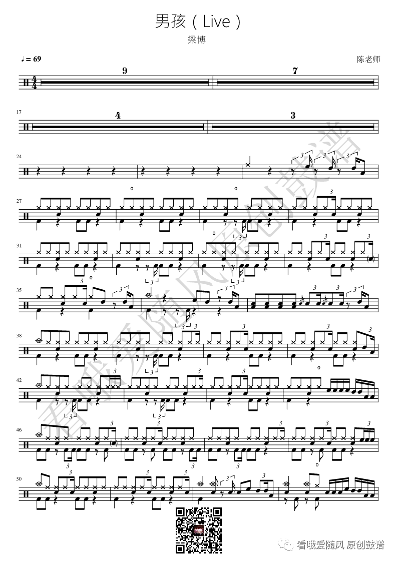 MYFIRSTSTORY《MissingYou》架子鼓谱,看哦爱随风编配出品,共有1张高清图谱,由打鼓谱上传并分享。