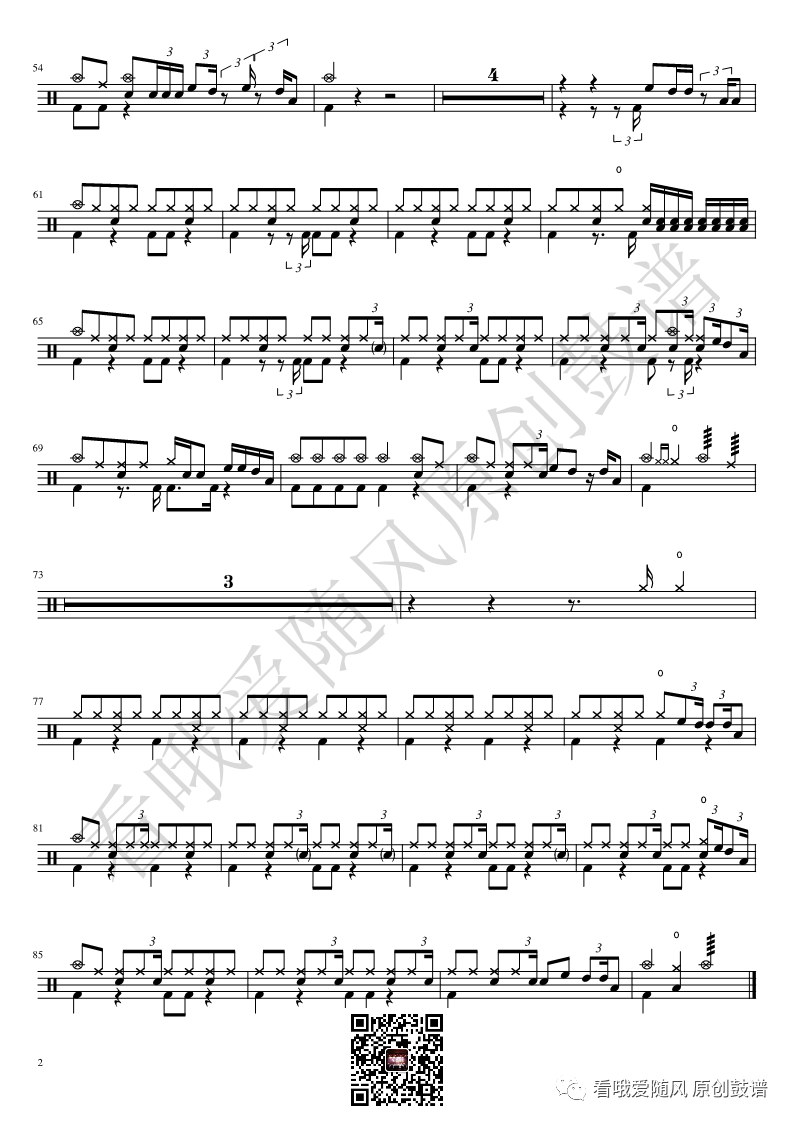 ONEOKROCK《未完成交響曲》架子鼓谱,看哦爱随风编配出品,共有1张高清图谱,由打鼓谱上传并分享。