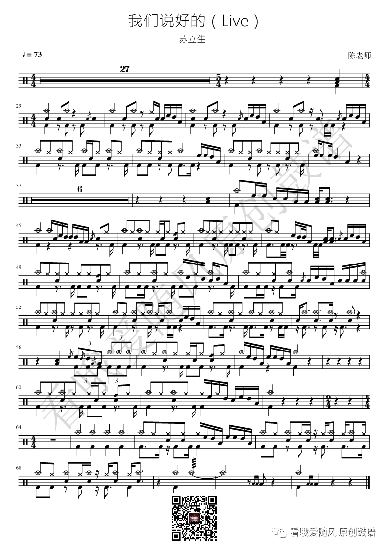 苏立生《我们说好的》架子鼓谱, 看哦爱随风编配出品,共有1张高清图谱,由打鼓谱上传并分享。NO.221 我们说好的(Live)苏立生 鼓谱