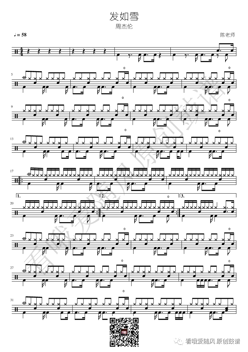 周杰伦《夜曲》鼓谱 - 架子鼓谱